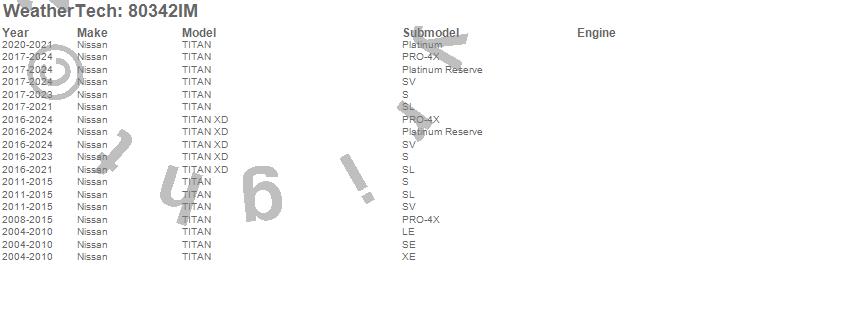 Below is an abbreviated list of applications for the Side Window Deflector.TITAN, TITAN XD, Nissan, 2024, 2023, 2022, 2021, 2020, 2019, 2018, 2017, 2016, 2015, 2014, 2013, 2012, 2011, 2010, 2009, 2008