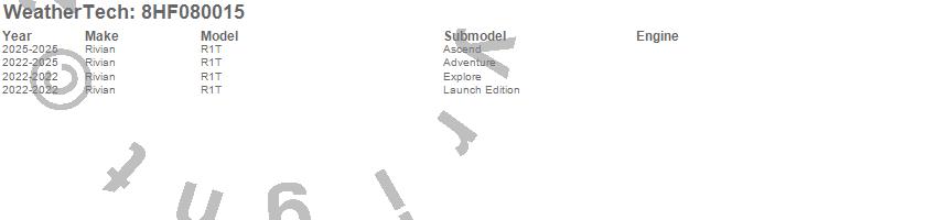 Brand: WeatherTechPart Number: 8HF080015Tonneau Cover Type: UPC: 787765769785