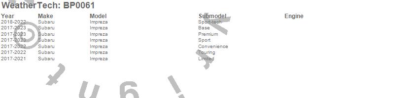 Below is an abbreviated list of applications for the BumperTopper.Impreza, Subaru, 2023, 2022, 2021, 2020, 2019, 2018, 2017