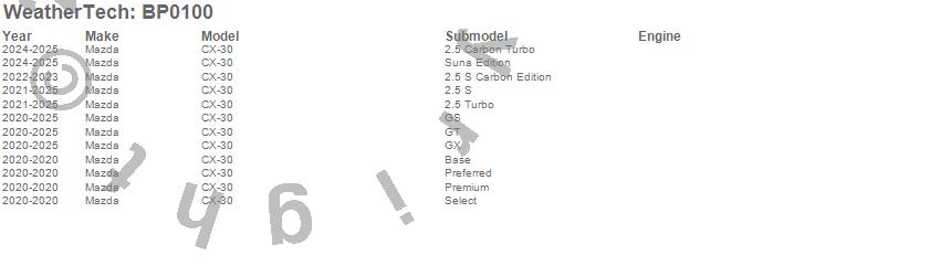 Below is an abbreviated list of applications for the BumperTopper.CX-30, Mazda, 2025, 2024, 2023, 2022, 2021, 2020