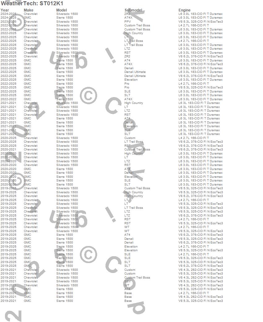 Below is an abbreviated list of applications for the Sill Protector.Sierra 1500, Silverado 1500, Chevrolet, GMC, 2026, 2025, 2024, 2023, 2022, 2021, 2020, 2019