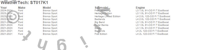 Below is an abbreviated list of applications for the Sill Protector.Bronco Sport, Ford, 2025, 2024, 2023, 2022, 2021