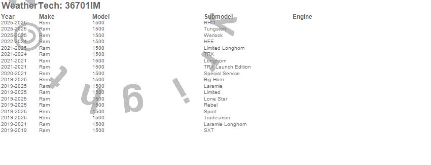 Brand: WeatherTechPart Number: 36701IMTruck Bed Liner Type: UPC: 787765769716