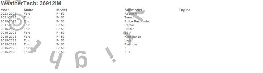 Brand: WeatherTechPart Number: 36912IMTruck Bed Liner Type: UPC: 787765611336