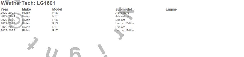 Below is an abbreviated list of applications for the LampGard.R1S, R1T, Rivian, 2024, 2023, 2022