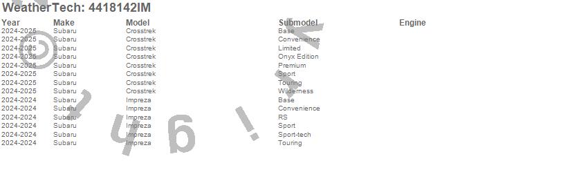 Below is an abbreviated list of applications for the FloorLiner HP.Crosstrek, Impreza, Subaru, 2026, 2025, 2024