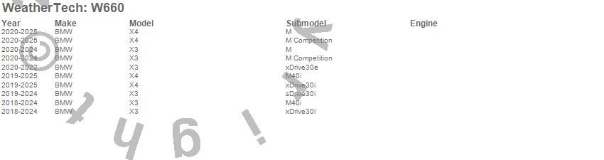 Below is an abbreviated list of applications for the All Weather Floor Mats.X3, X4, BMW, 2025, 2024, 2023, 2022, 2021, 2020, 2019, 2018