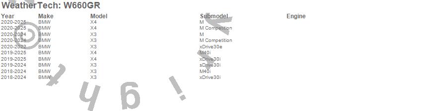 Below is an abbreviated list of applications for the All Weather Floor Mats.X3, X4, BMW, 2025, 2024, 2023, 2022, 2021, 2020, 2019, 2018