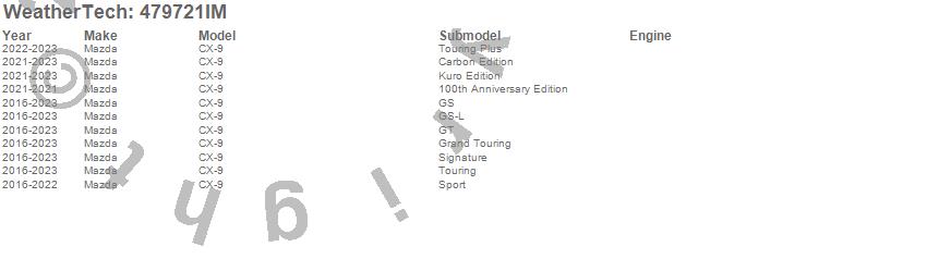 Below is an abbreviated list of applications for the FloorLiner HP.CX-9, Mazda, 2023, 2022, 2021, 2020, 2019, 2018, 2017, 2016