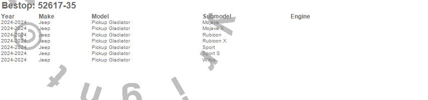 Brand: BestopPart Number: 52617-35Brief Soft Top Type: Black Diamond - Incl. Windshield Header - Requires Soft Top Door SorroundsUPC: 077848149321