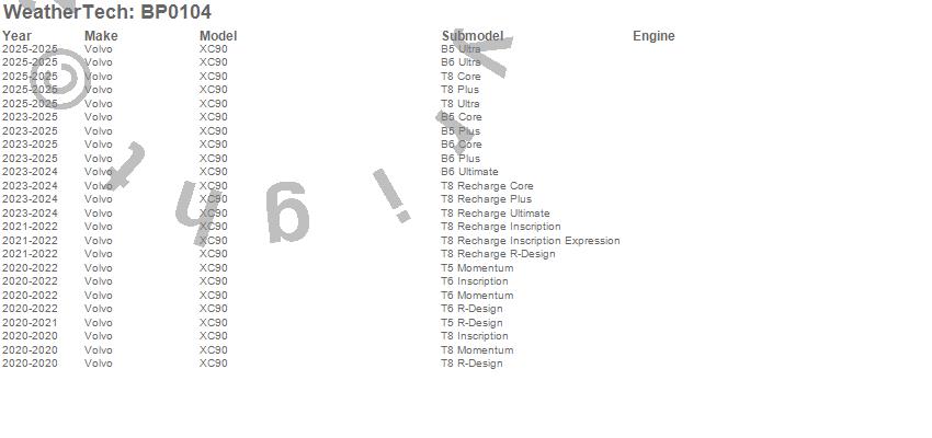 Below is an abbreviated list of applications for the BumperTopper.XC90, Volvo, 2026, 2025, 2024, 2023, 2022, 2021, 2020
