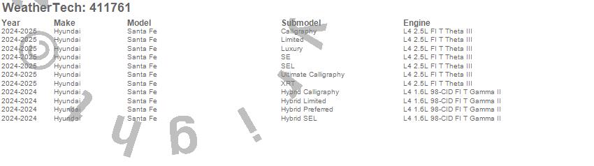 Below is an abbreviated list of applications for the Cargo Liner.Santa Fe, Hyundai, 2026, 2025, 2024