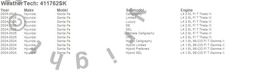 Below is an abbreviated list of applications for the Cargo Liner w/Bumper Protector.Santa Fe, Hyundai, 2026, 2025, 2024