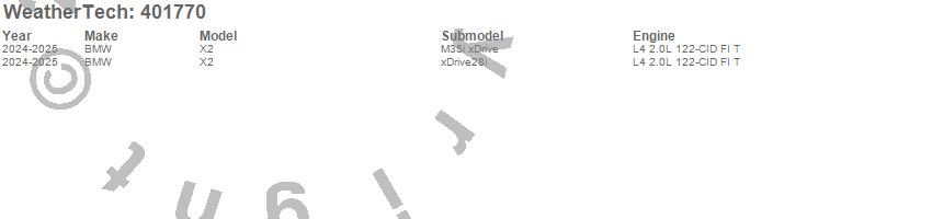 Below is an abbreviated list of applications for the Cargo Liner.X2, BMW, 2025, 2024