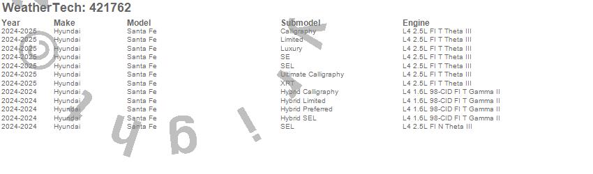 Below is an abbreviated list of applications for the Cargo Liner.Santa Fe, Hyundai, 2026, 2025, 2024