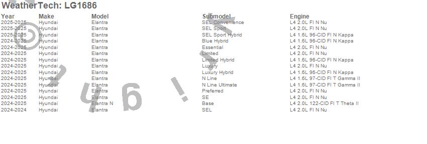 Below is an abbreviated list of applications for the LampGard.Elantra, Elantra N, Hyundai, 2025, 2024