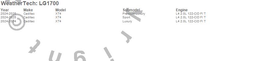 Below is an abbreviated list of applications for the LampGard.XT4, Cadillac, 2025, 2024