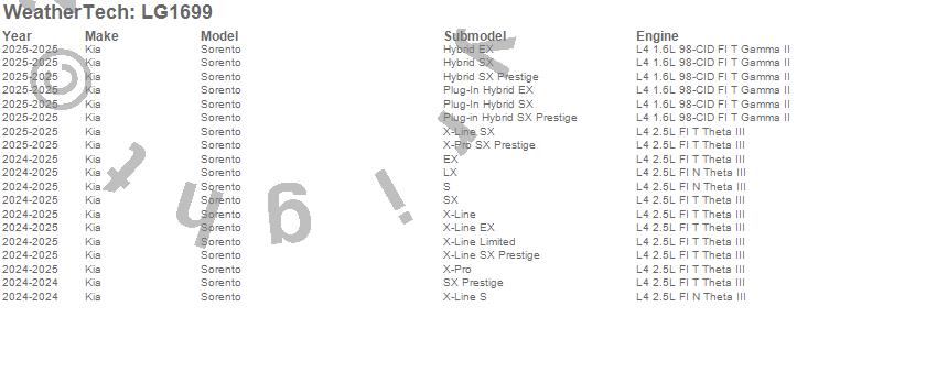 Below is an abbreviated list of applications for the LampGard.Sorento, Kia, 2025, 2024