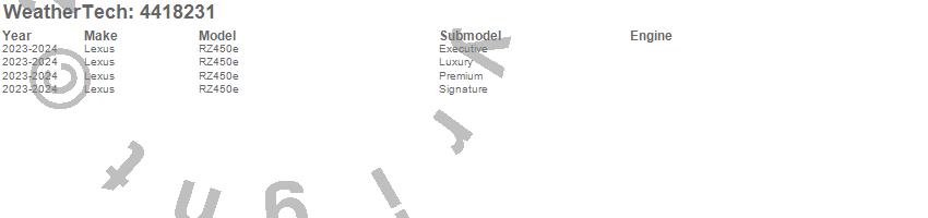Below is an abbreviated list of applications for the FloorLiner DigitalFit.RZ450e, Lexus, 2024, 2023