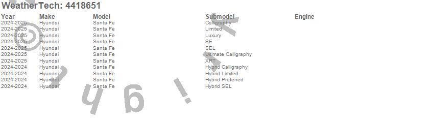 Below is an abbreviated list of applications for the FloorLiner DigitalFit.Santa Fe, Hyundai, 2025, 2024