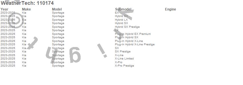 Below is an abbreviated list of applications for the MudFlap No-Drill DigitalFit.Sportage, Kia, 2025, 2024, 2023