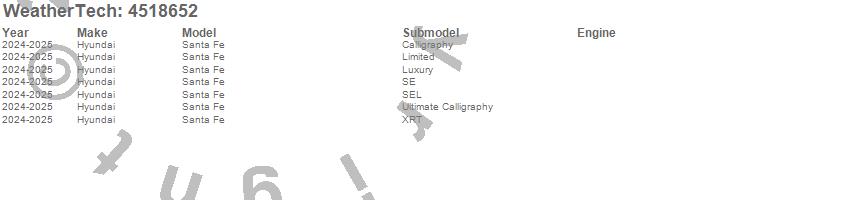 Below is an abbreviated list of applications for the FloorLiner DigitalFit.Santa Fe, Hyundai, 2026, 2025, 2024