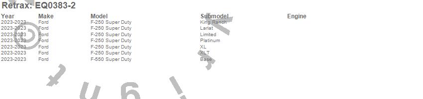 Below is an abbreviated list of applications for the Retrax EQ Retractable Tonneau Cover.F-250 Super Duty, F-550 Super Duty, Ford, 2023