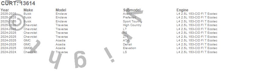 Below is an abbreviated list of applications for the Class III Loaded Ball Mount.Acadia, Enclave, Traverse, Buick, Chevrolet, GMC, 2026, 2025, 2024
