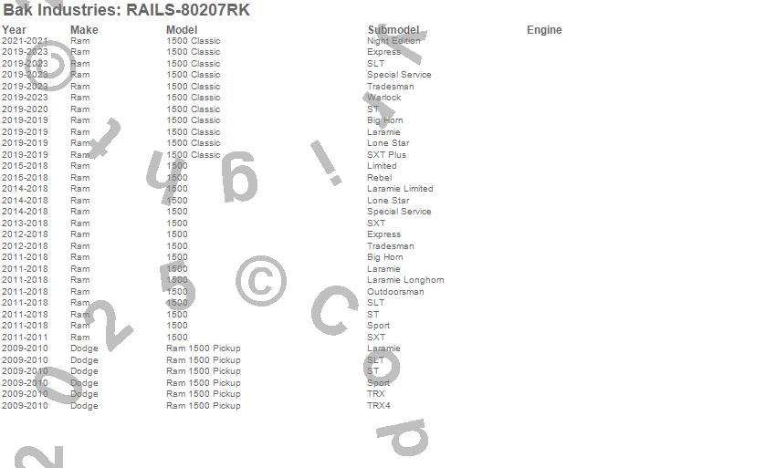 Brand: BAK IndustriesPart Number: RAILS-80207RKTonneau Cover Rail Type: Only T-Slot RailsUPC: 192631048077