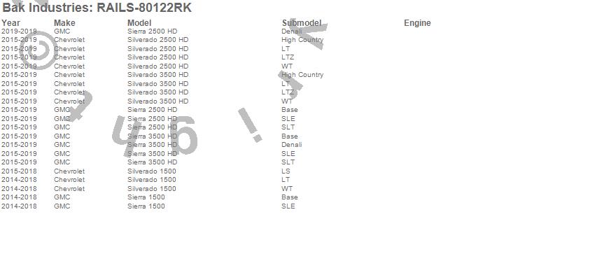 Below is an abbreviated list of applications for the Revolver X4ts Rails.Sierra 1500, Sierra 2500 HD, Sierra 3500 HD, Silverado 1500, Silverado 2500 HD, Silverado 3500 HD, Chevrolet, GMC, 2019, 2018, 2017, 2016, 2015, 2014