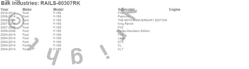 Brand: BAK IndustriesPart Number: RAILS-80307RKTonneau Cover Rail Type: Only T-Slot RailsUPC: 192631046684