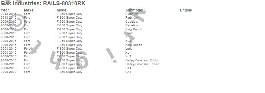Below is an abbreviated list of applications for the Revolver X4ts Rails.F-250 Super Duty, F-350 Super Duty, Ford, 2016, 2015, 2014, 2013, 2012, 2011, 2010, 2009, 2008