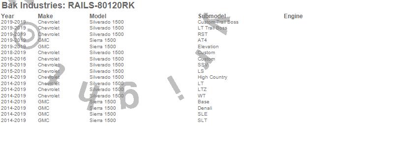Below is an abbreviated list of applications for the Revolver X4ts Rails.Sierra 1500, Silverado 1500, Chevrolet, GMC, 2019, 2018, 2017, 2016, 2015, 2014