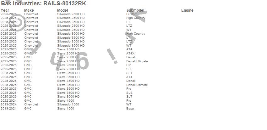 Below is an abbreviated list of applications for the Revolver X4ts Rails.Sierra 1500, Sierra 2500 HD, Sierra 3500 HD, Silverado 1500, Silverado 2500 HD, Silverado 3500 HD, Chevrolet, GMC, 2025, 2024, 2023, 2022, 2021, 2020, 2019