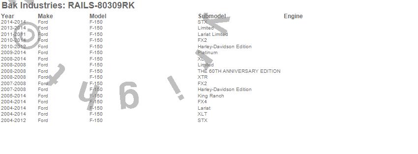 Below is an abbreviated list of applications for the Revolver X4ts Rails.F-150, Ford, 2014, 2013, 2012, 2011, 2010, 2009, 2008, 2007, 2006, 2005, 2004