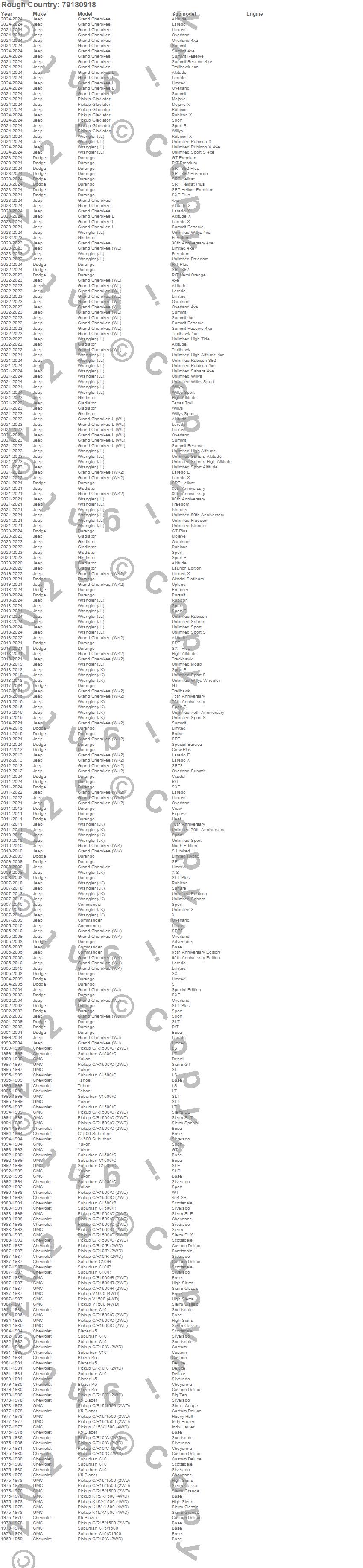 Below is an abbreviated list of applications for the Series 79 Wheel.Blazer K5, C10 Pickup, C10 Suburban, C15/C1500 Suburban, C1500 Pickup, C1500 Suburban, Commander, Durango, Gladiator, Grand Cherokee, Grand Cherokee (WJ), Grand Cherokee (WK), Grand Cherokee (WK2), Grand Cherokee (WL), Grand Cherokee L, Grand Cherokee L (WL), K1500 Pickup, K5 Blazer, Pickup Gladiator, R10 Pickup