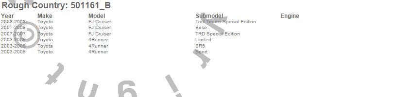 Below is an abbreviated list of applications for the Lifted N3 Struts.4Runner, FJ Cruiser, Toyota, 2009, 2008, 2007, 2006, 2005, 2004, 2003