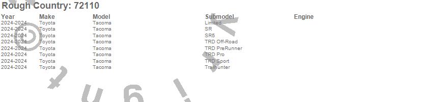 Below is an abbreviated list of applications for the Roof Rack System.Tacoma, Toyota, 2024