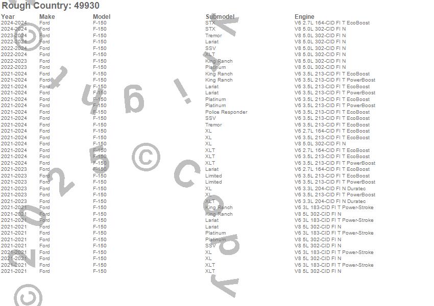 Below is an abbreviated list of applications for the Suspension Lift Kit w/Shocks.F-150, Ford, 2025, 2024, 2023, 2022, 2021