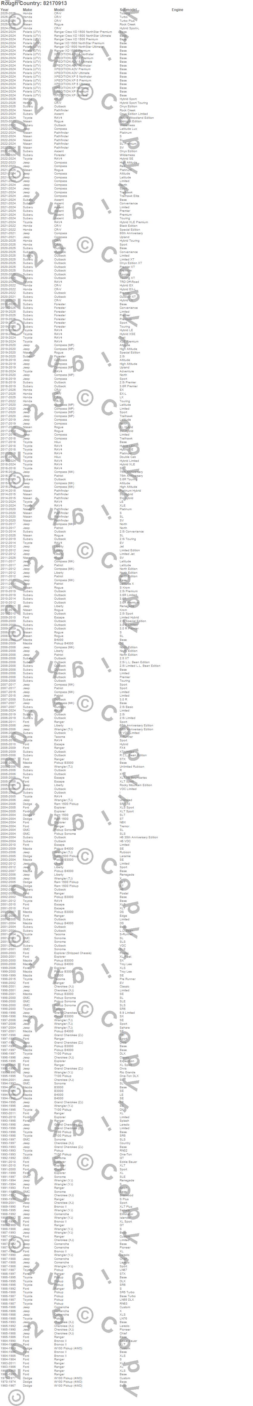 Below is an abbreviated list of applications for the Series 82 Wheel.Ascent, B3000, B4000, Bronco II, Cherokee (XJ), Comanche, Compass, CR-V, Escape, Explorer, Explorer (Stripped Chassis), Forester, Grand Cherokee (ZJ), Hilux, Liberty, Outback, Pathfinder, Patriot, Pickup, Ram 1500