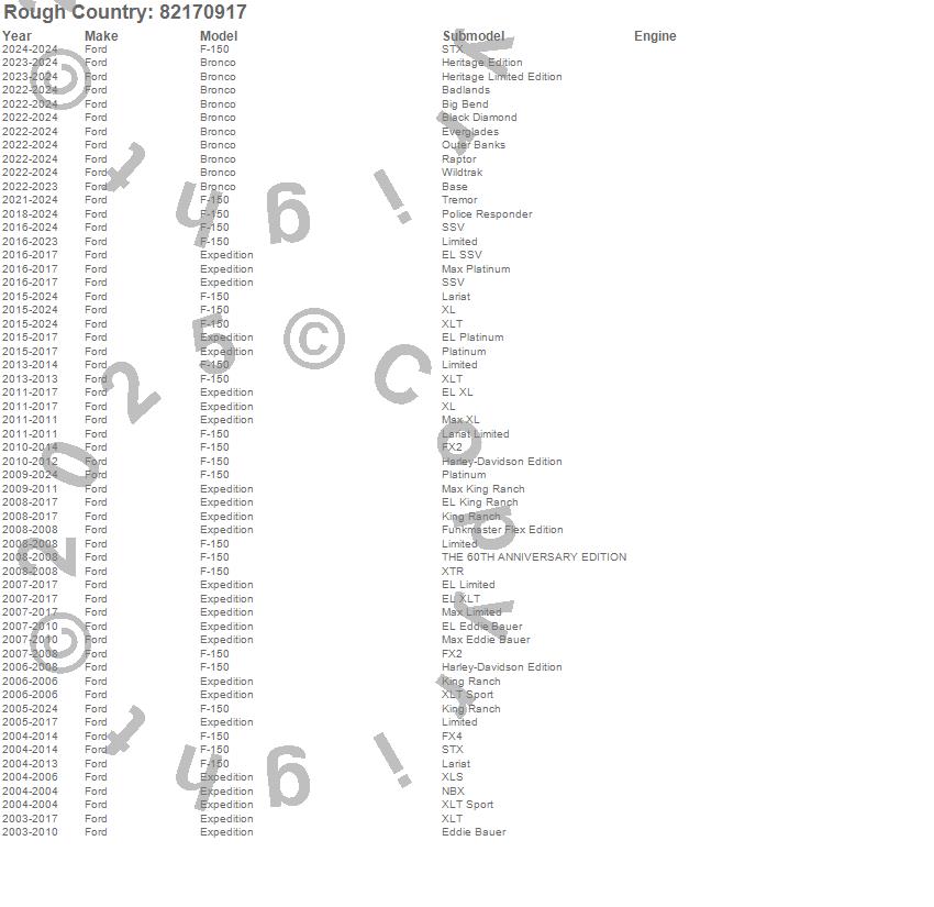 Below is an abbreviated list of applications for the Series 82 Wheel.Bronco, Expedition, F-150, Ford, 2025, 2024, 2023, 2022, 2021, 2020, 2019, 2018, 2017, 2016, 2015, 2014, 2013, 2012, 2011, 2010