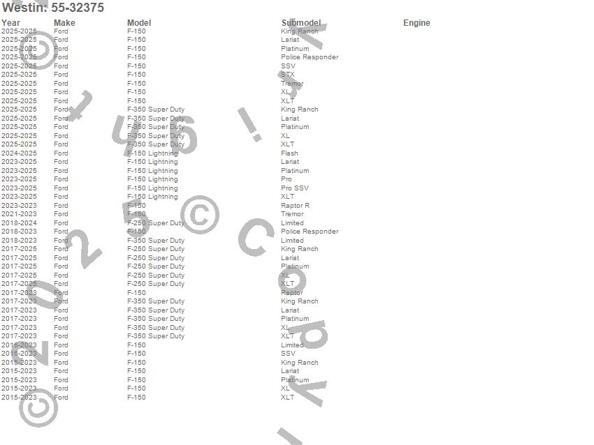 Brand: WestinPart Number: 55-32375Running Board Type: Textured BlackUPC: 707742122709
