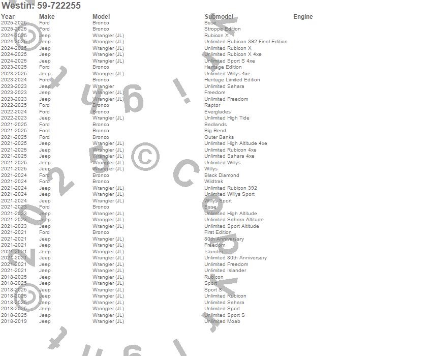 Below is an abbreviated list of applications for the Accessory For XTS.Bronco, Wrangler, Wrangler (JL), Ford, Jeep, 2025, 2024, 2023, 2022, 2021, 2020, 2019, 2018