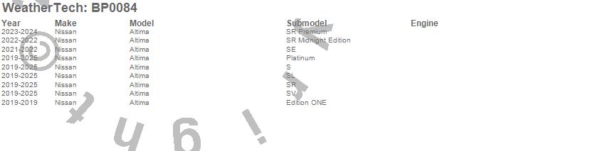 Below is an abbreviated list of applications for the BumperTopper.Altima, Nissan, 2025, 2024, 2023, 2022, 2021, 2020, 2019