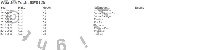 Below is an abbreviated list of applications for the BumperTopper.Q3, Audi, 2025, 2024, 2023, 2022, 2021, 2020, 2019, 2018
