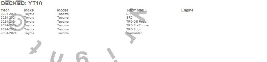 Below is an abbreviated list of applications for the DECKED One Drawer Storage System.Tacoma, Toyota, 2026, 2025, 2024