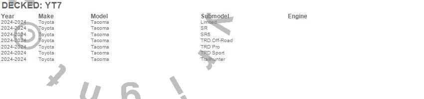Below is an abbreviated list of applications for the DECKED One Drawer Storage System.Tacoma, Toyota, 2026, 2025, 2024