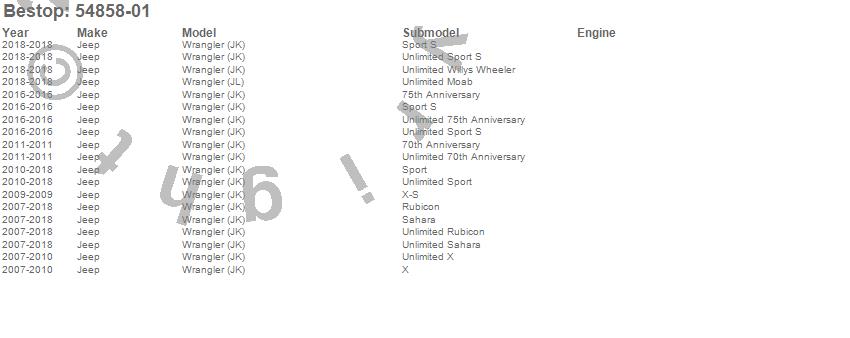 Brand: BestopPart Number: 54858-01Windshield Wiper Motor Type: For Trektop Pro Hybrid Soft TopUPC: 077848128050