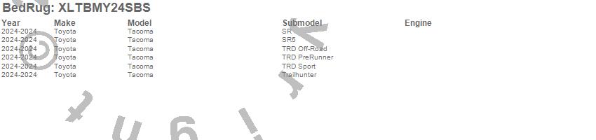 Brand: BedRugPart Number: XLTBMY24SBSTruck Bed Mat Type: For Use w/Spray-in On Bed Liner And Non Liner ApplicationsUPC: 870558037892
