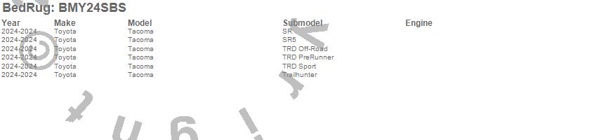 Below is an abbreviated list of applications for the BedRug Tailgate Mat.Tacoma, Toyota, 2025, 2024